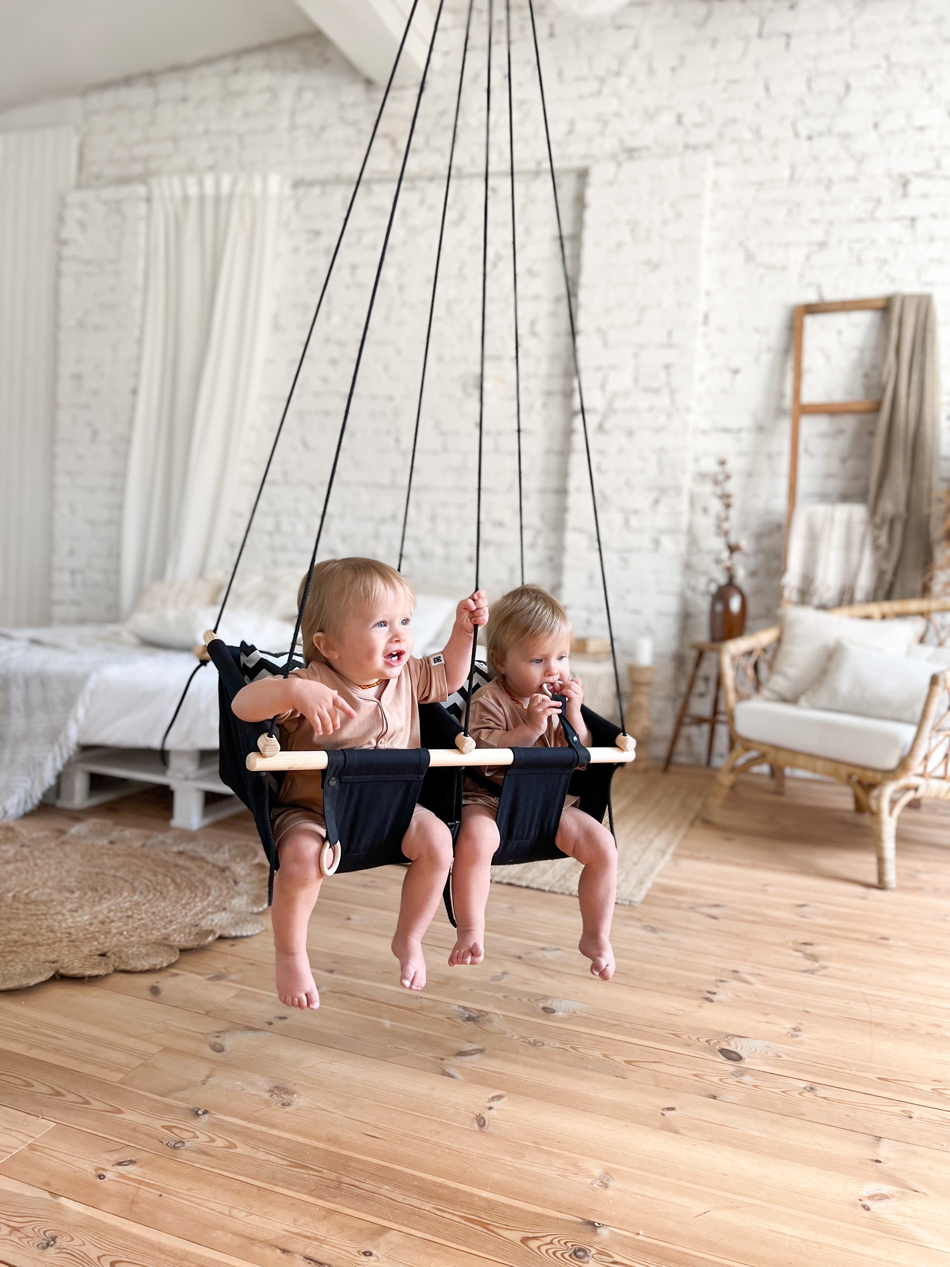 Domājot par jūsu bērna mieru un drošību, šīs bērnu šūpoles ir izgatavotas no dubultā kokvilnas auduma un personalizēta spilvena. Mīkstais spilvens padara šūpoles ērtākas un tās ir vieglāk kopt. Ja vēlaties šīs šūpoles padarīt vēl īpašākas, varam tās arī personalizēt!