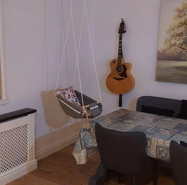 Piekārt ārā - uz lieveņa, terases vai dārzā zem skaista koka. Iekštelpās - pie griestiem, durvju ailē vai griestu sijām. Turklāt komplektā jau ir iekļautas 2 karabīnes un iekarināmie āķi.